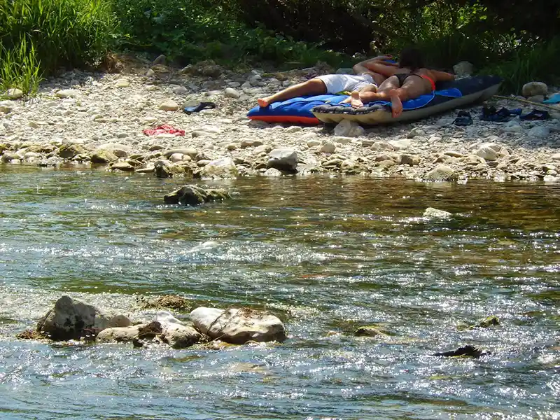 Sinon, laissez-vous bercer par le bruit de la rivière, les pieds dans l’eau ou la tête dans un bon livre, lézarder au soleil ou observer la faune et la flore. Des fauteuils et des bains de soleil sont mis à votre disposition.